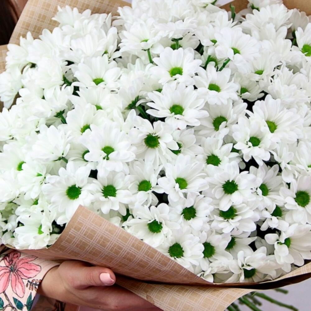 Шикарный букет из ароматной белой хризантемы будет долго радовать его обладательницу, ведь этот цветок -лидер по стойкости .