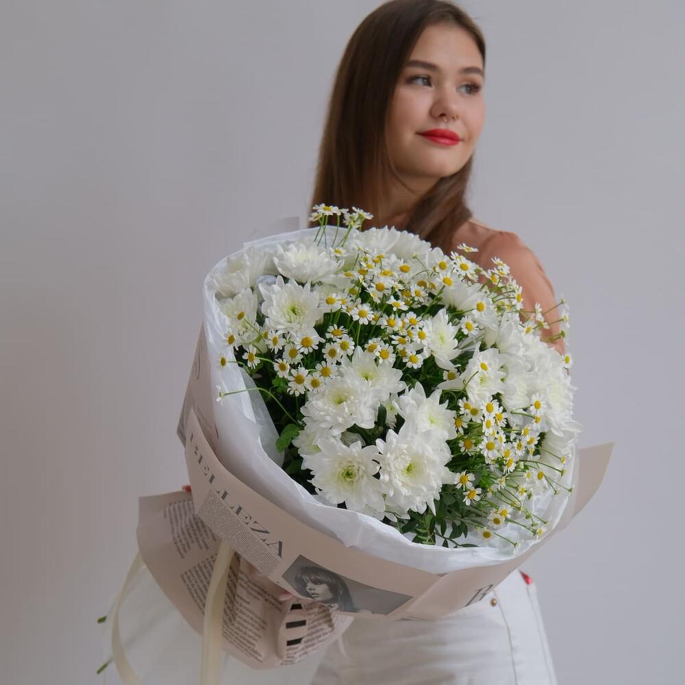 Букет "Ромашковое поле" кустовая хризантема, полевая ромашка в Кондрово