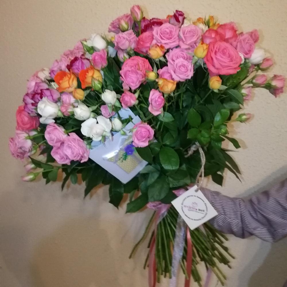 Заказала у “Цветы и Точка” восхитительный букет из роз для своей подруги на ее юбилей. Букет был просто великолепен! Яркие цвета и свежесть цветов вызвали искреннюю радость у получательницы. Спасибо за качественную доставку и создание незабываемого момента!”